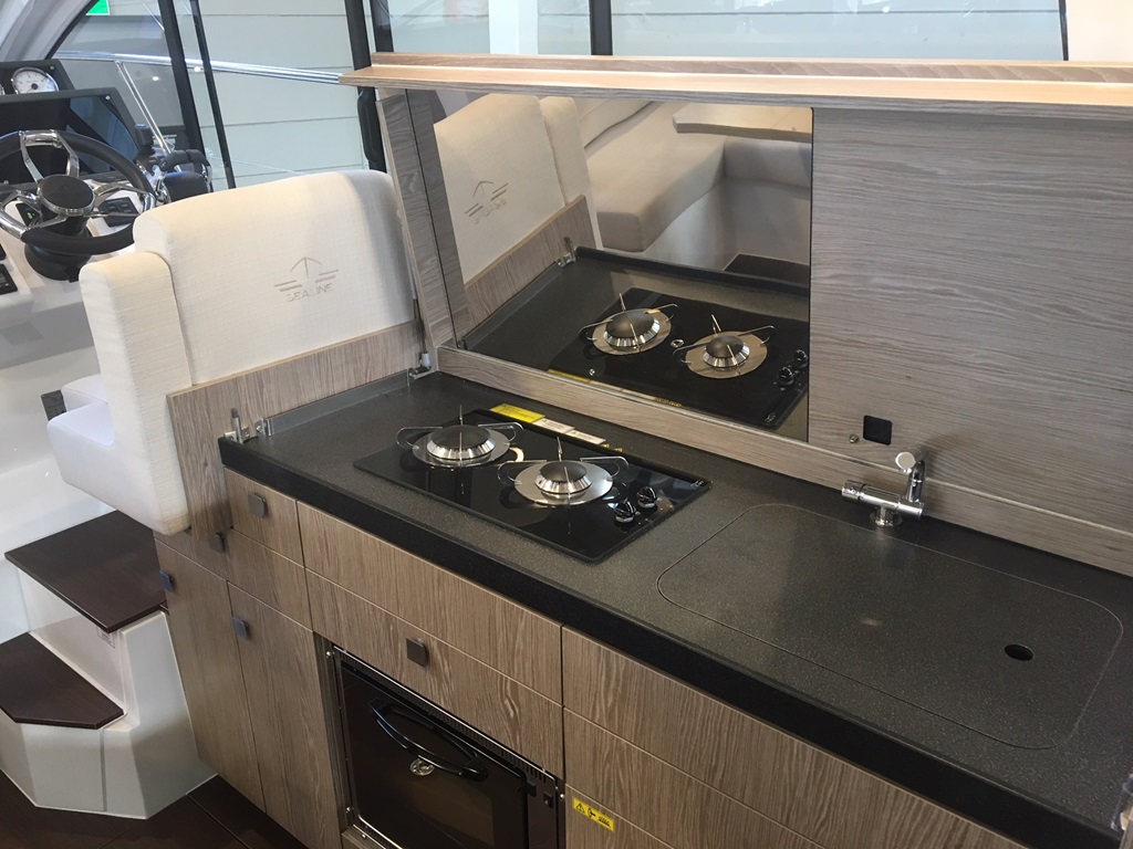 Gaskochfeld, elektrischer Kühlschrank, Spülbecken, Fusion Soundsystem, KlimaanlageSicherheit