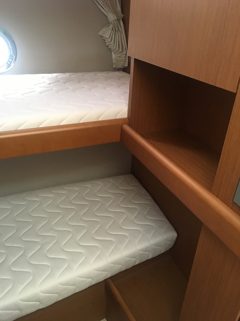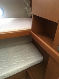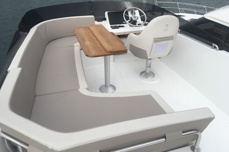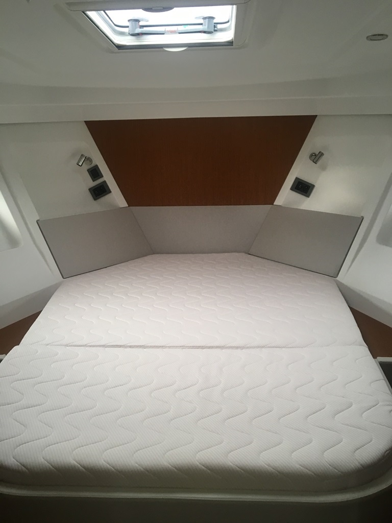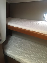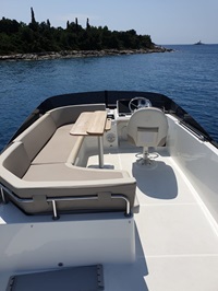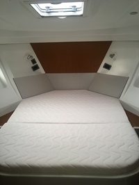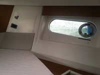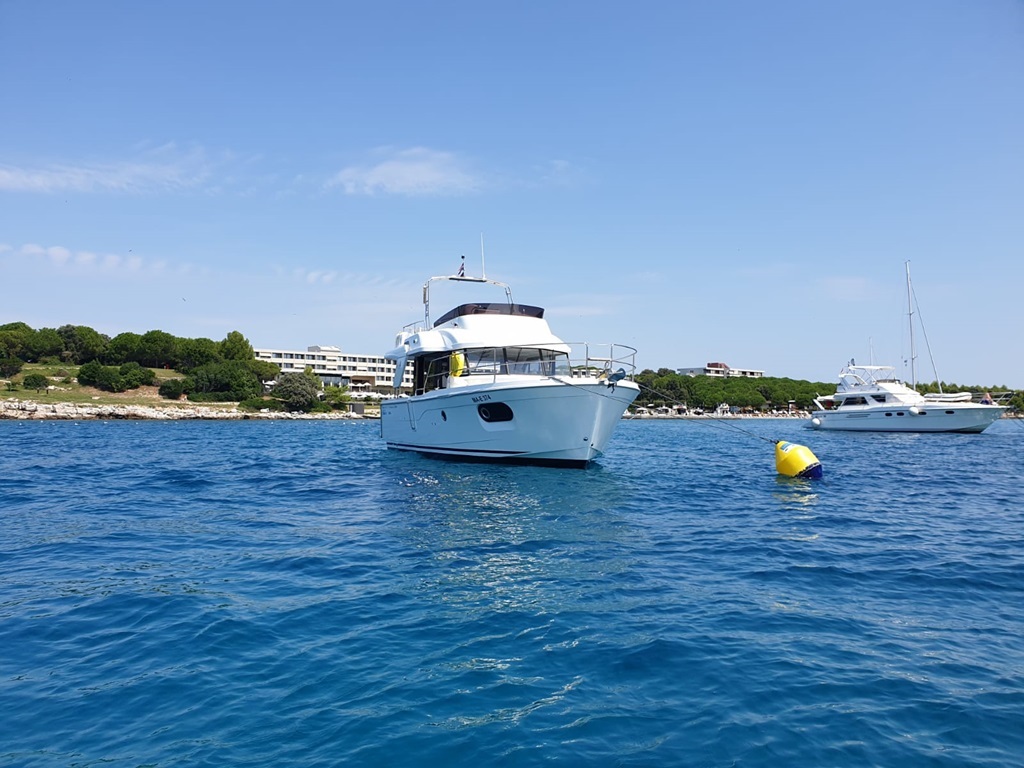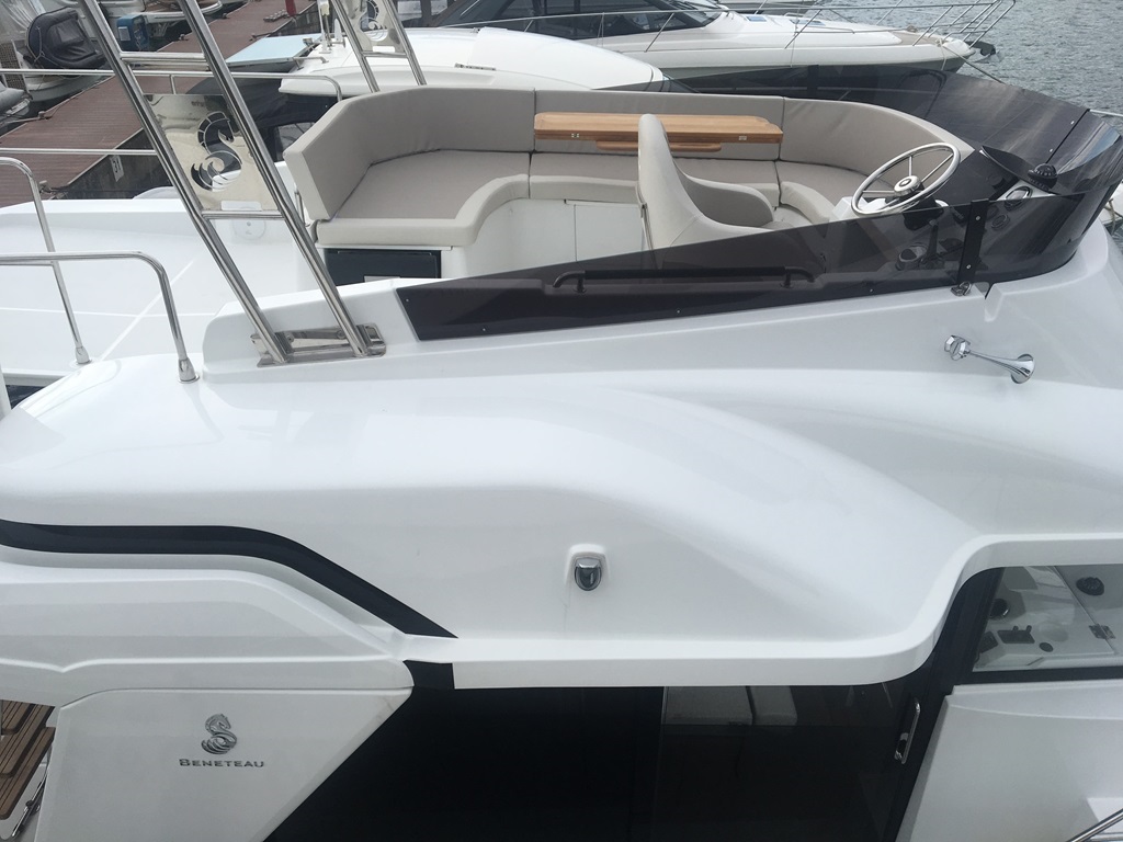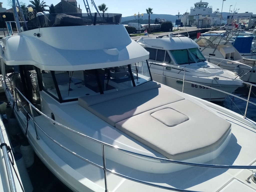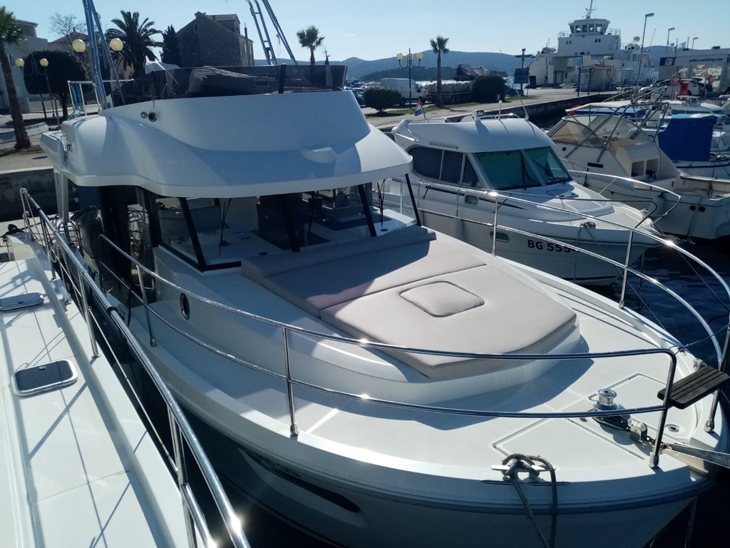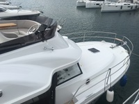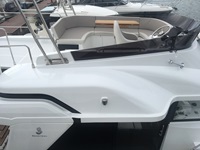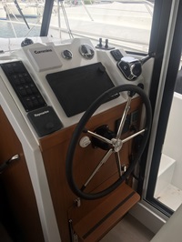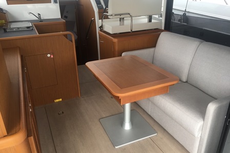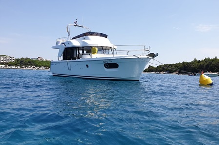 Durch seine harmonische und vertraute Gestalt strahlt der Swift Trawler 35 ein umfassendes Gefühl der Sicherheit aus, das durch seine Bauweise und seine Ausstattung durchgängig unterstrichen wird. Der Swift Trawler 35 basiert auf einem von Beneteau Power entwickelten Halbgleiterrumpf und ist mit einem 425 PS-Cummings-Motor ausgestattet. Beide zusammen sorgen für Fahrspaß und hohe Manövrierfähigkeit. Die Flybridge des Swift Trawler 35 kann mit einem Bimini oder einem Soft-Top ausgestattet werden und bietet einen komfortablen Aufenthaltsbereich mit Meerblick.