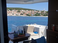 Camperverdeck, Badeleiter, Heckdusche warm/kalt, Fender, Beiboot, Außenborder